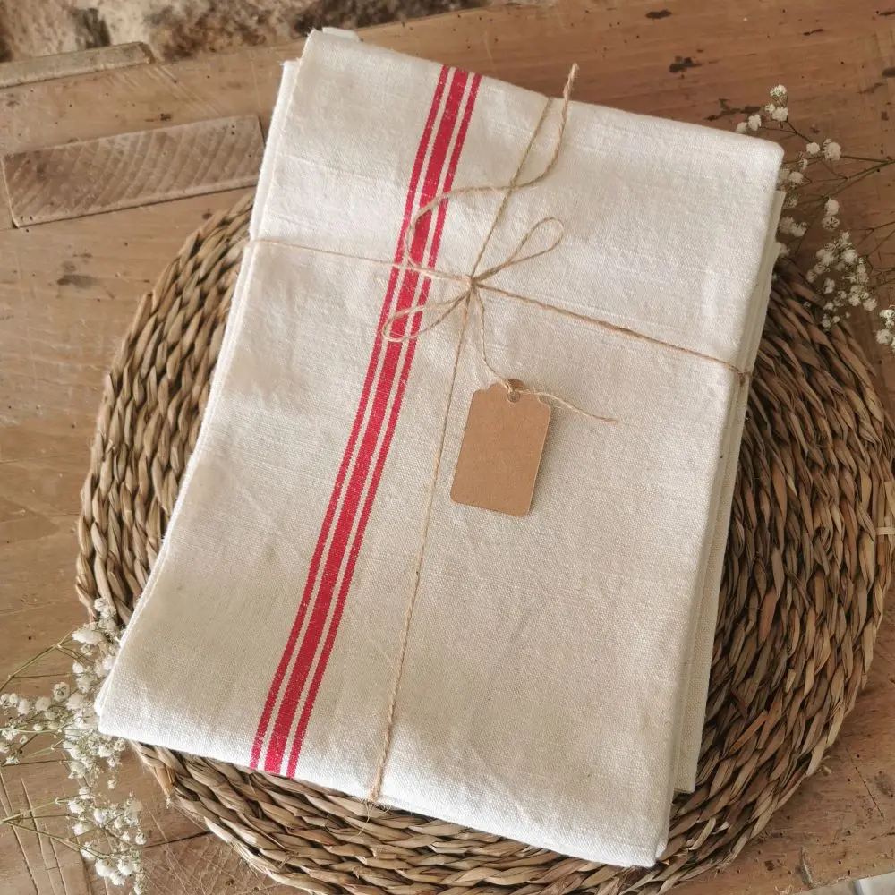 34,00€Lot de 2 Torchons anciens en lin, 3 liteaux rouges de 1930
